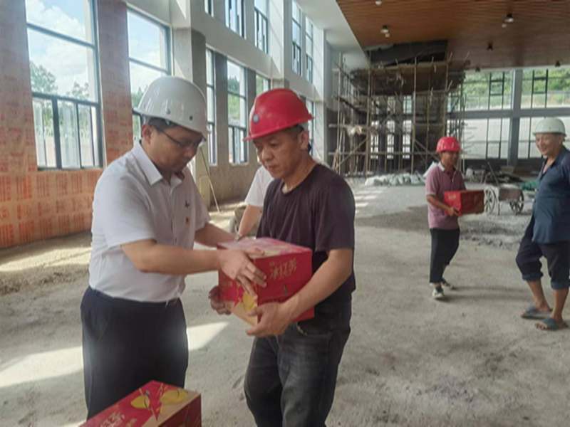 黨委副書記、總經(jīng)理、支部指導(dǎo)員江中同志為工人送上防暑用品