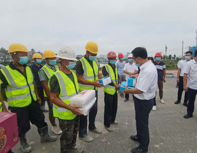 8月28日上午,懷化市城市建設(shè)投資有限公司領(lǐng)導(dǎo)班子成員帶領(lǐng)公司全體黨員(含預(yù)備黨員)、項目負責(zé)人60余人分三隊前往太平橋地下停車場、懷化職院公共實訓(xùn)基地、雙擁公園等9個在建項目的施工現(xiàn)場,結(jié)合“我為群眾辦實事”開展工地走訪慰問的志愿者活動,通過活動為一線工人送上黨的關(guān)心和問候,讓堅守在一線崗位的工人實實在在感受到黨的關(guān)懷和溫暖。