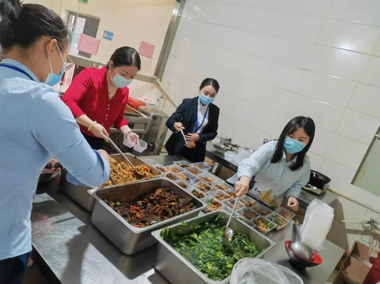 面對(duì)疫情變化,公司食堂工作人員出行受限,眼看國(guó)資系統(tǒng)抗疫人員,市城建投公司、市交建投公司包保社區(qū)志愿者、醫(yī)務(wù)人員和駐守大本營(yíng)的守護(hù)者用餐無法保證時(shí),市城建投公司領(lǐng)導(dǎo)率先垂范,帶領(lǐng)“大本營(yíng)”守護(hù)者們走進(jìn)食堂,紛紛化身洗菜工、切菜員、廚師、打菜員……自己動(dòng)手,煮飯炒菜,打包送餐?!皠傞_始挺怕,壓力也大,頭一回用大型的廚房設(shè)備,挑戰(zhàn)兩三百人的用餐,心里在打鼓,怕操作不當(dāng),耽誤大家就餐,怕味道不好等,還是大家的鼓勵(lì)和齊心協(xié)力,讓我們圓滿完成任務(wù)?!焙笄诒U辖M工作人員笑道,“掌勺不易,還好最后大家都挺滿意”。