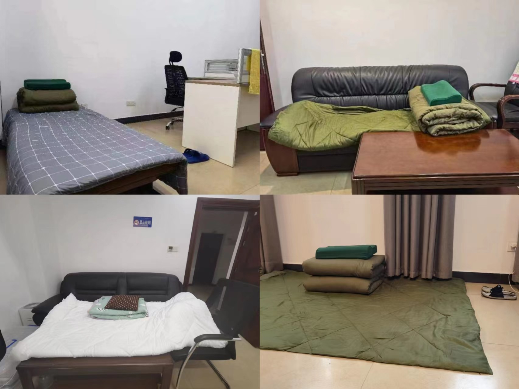 “為扎實(shí)做好智慧大廈的疫情防控工作,公司實(shí)行閉環(huán)管理,采購(gòu)多套棉被,在會(huì)議室、辦公室打地鋪,讓堅(jiān)守的工作人員吃住行在公司?!笔谐墙ㄍ豆军h委委員、副總經(jīng)理蔡佳君說道,大家以司為家,全力做好后勤服務(wù)保障工作。