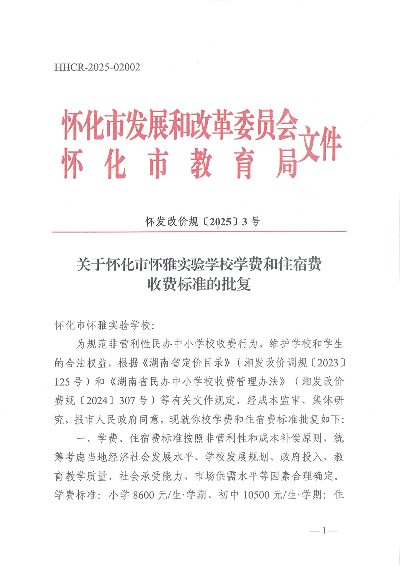文號:懷發(fā)改價規(guī)〔2025〕3號
