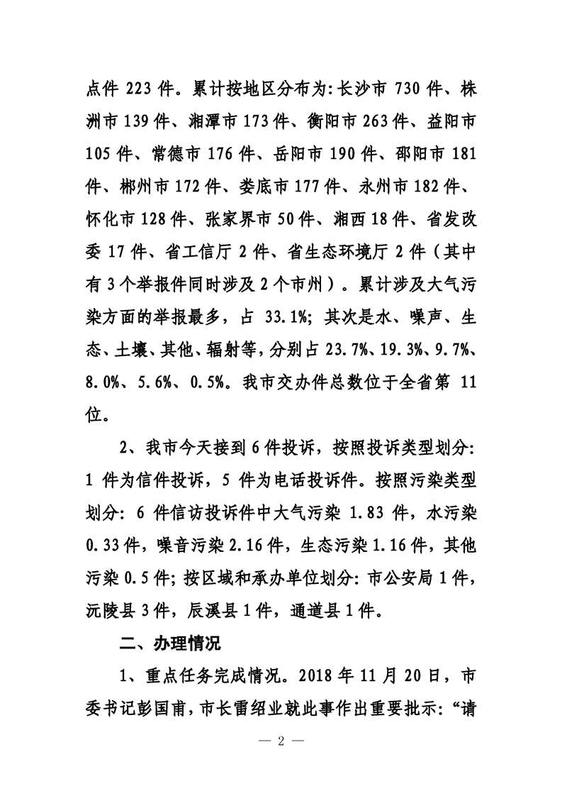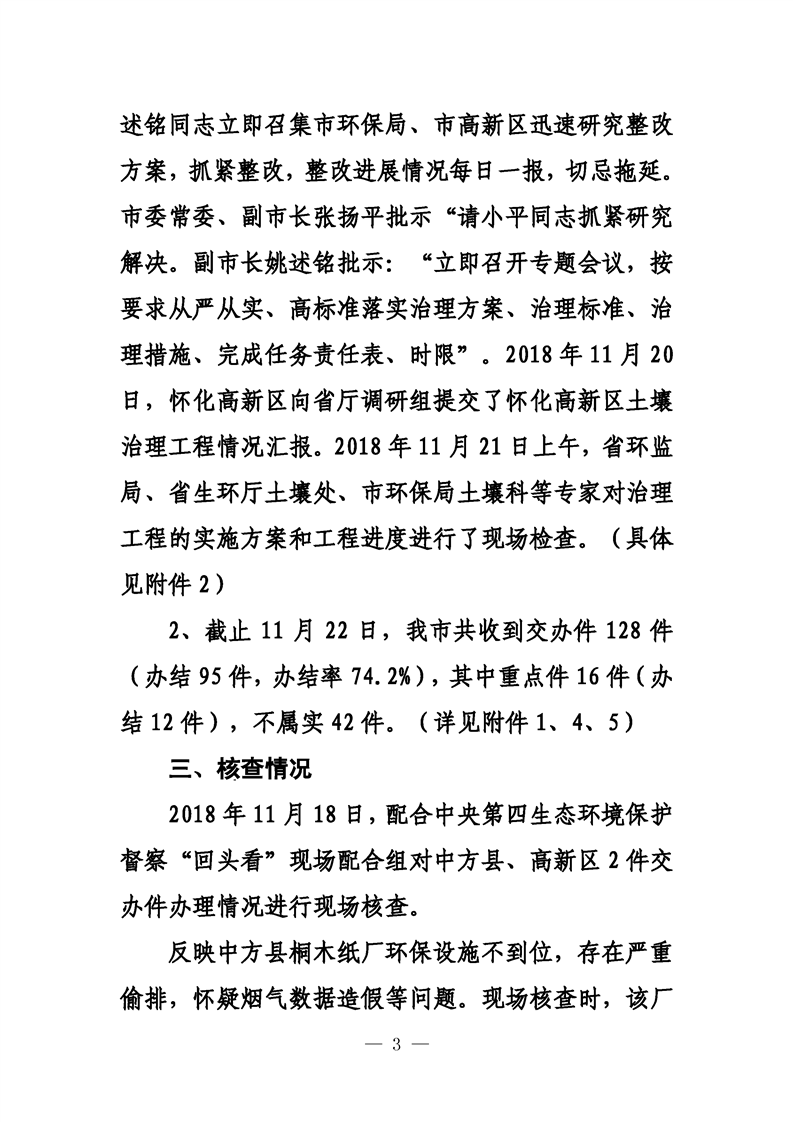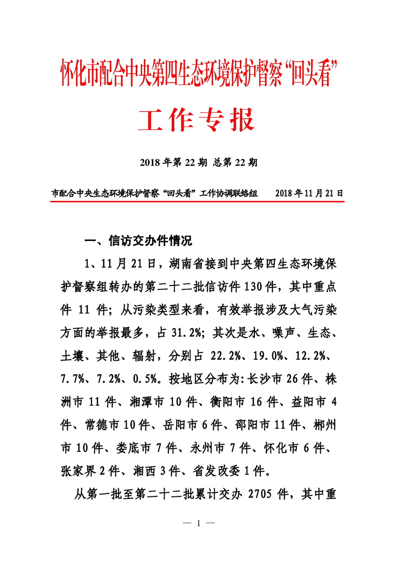 第二十二期 懷化市配合中央生態(tài)環(huán)境督察回頭看工作專報(bào)