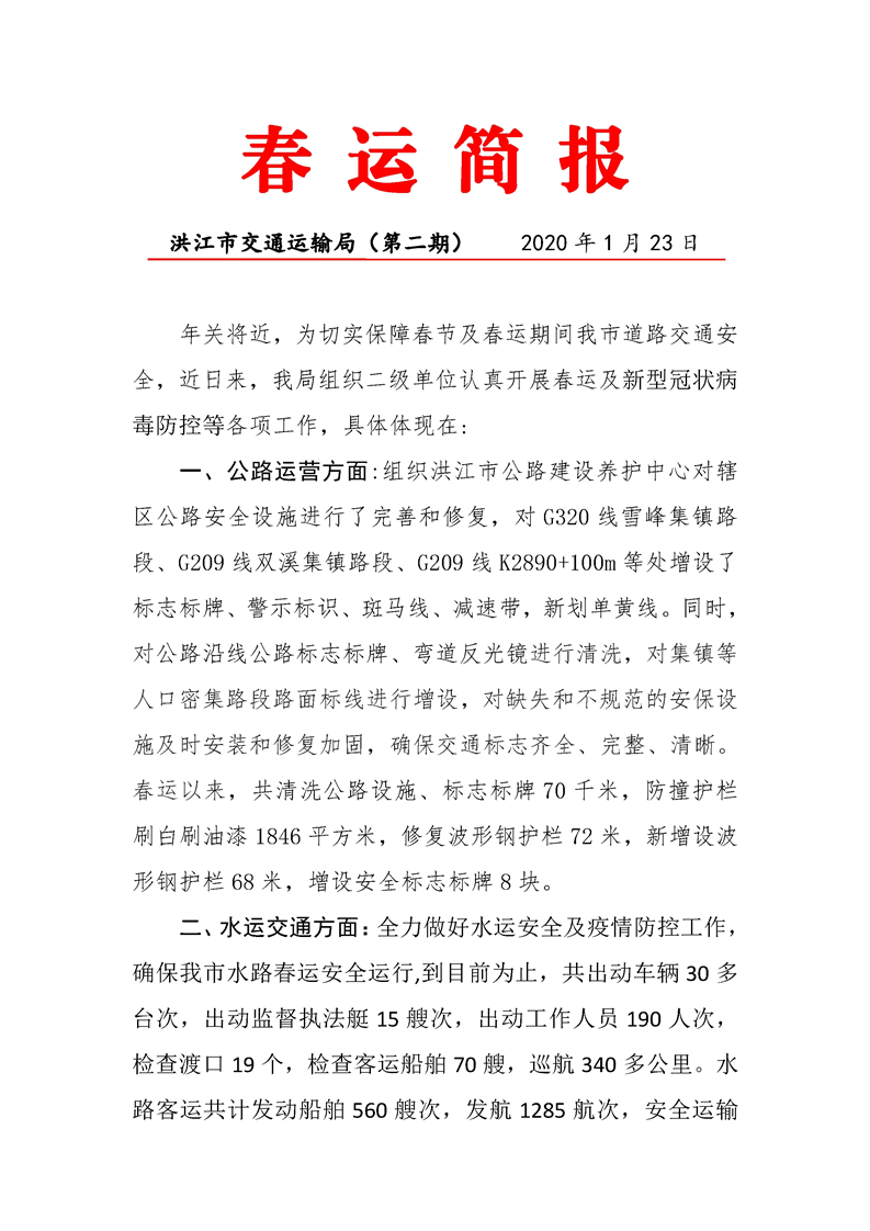 洪江市交通運(yùn)輸局春運(yùn)簡(jiǎn)報(bào) 第二期
