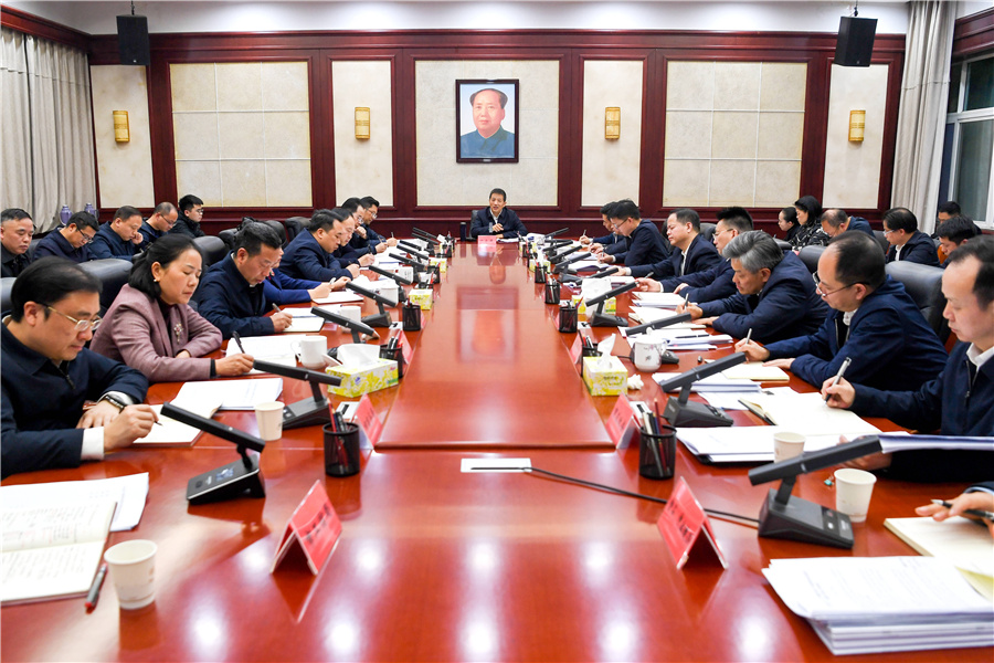 (2月6日下午,市委書記許忠建主持召開全市產(chǎn)業(yè)體系建設(shè)和招商引資重點簽約項目進展調(diào)度會。懷化日報全媒體記者 楊智偉 攝)