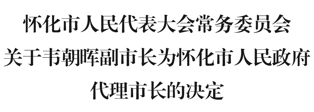 懷化市第六屆人民代表大會常務(wù)委員會第二十六次會議決定:韋朝暉副市長為懷化市人民政府代理市長。