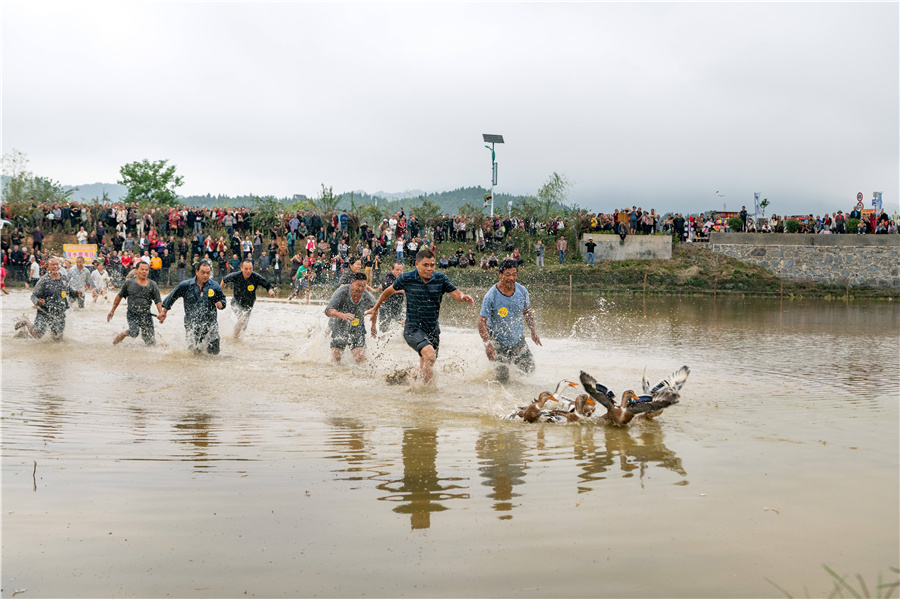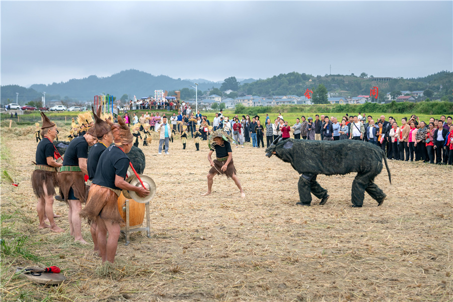9月23日,中國農民豐收節(jié),會同縣的稻香詩田景區(qū)內一派歡騰景象,成為慶祝豐收的熱鬧主場。田埂間稻浪翻滾,空氣中彌漫著清甜的稻香,一場場充滿鄉(xiāng)土氣息與歡樂氛圍的活動在此輪番上演——激昂的斗牛舞踏著鼓點躍動,金黃的草龍舞在人群中蜿蜒穿梭,拔河比賽的吶喊聲此起彼伏,還有趣味十足的抓鴨子游戲,讓參與者在追逐與歡笑中共享豐收的喜悅,將秋日的田園變成了一片歡樂的海洋。