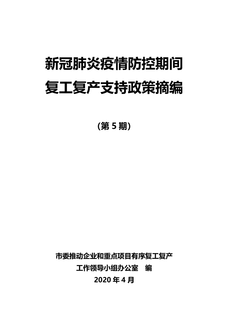 新冠肺炎疫情防控期間復工復產(chǎn)支持政策摘編(第5期)