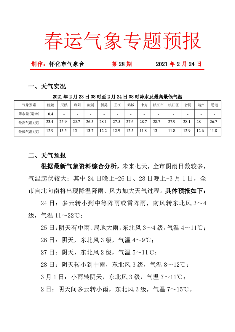 春運(yùn)期間氣象專題第28期