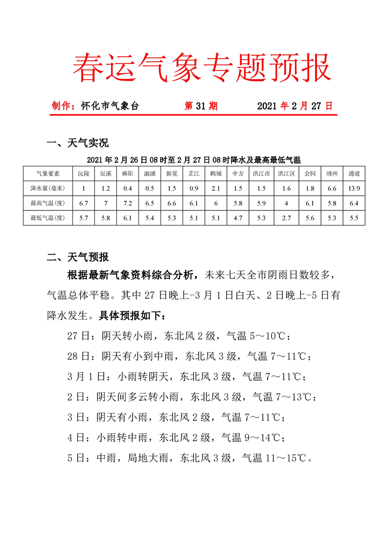 春運(yùn)期間氣象專題第31期