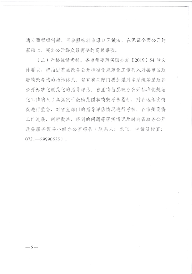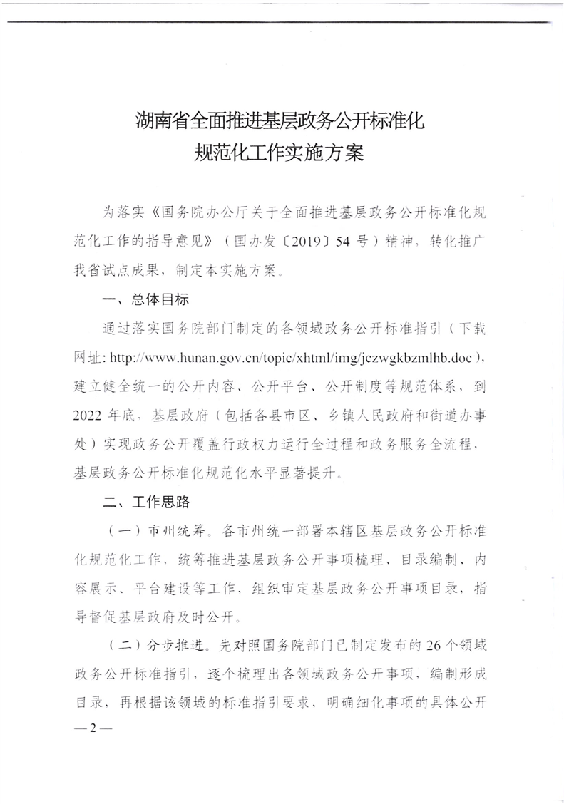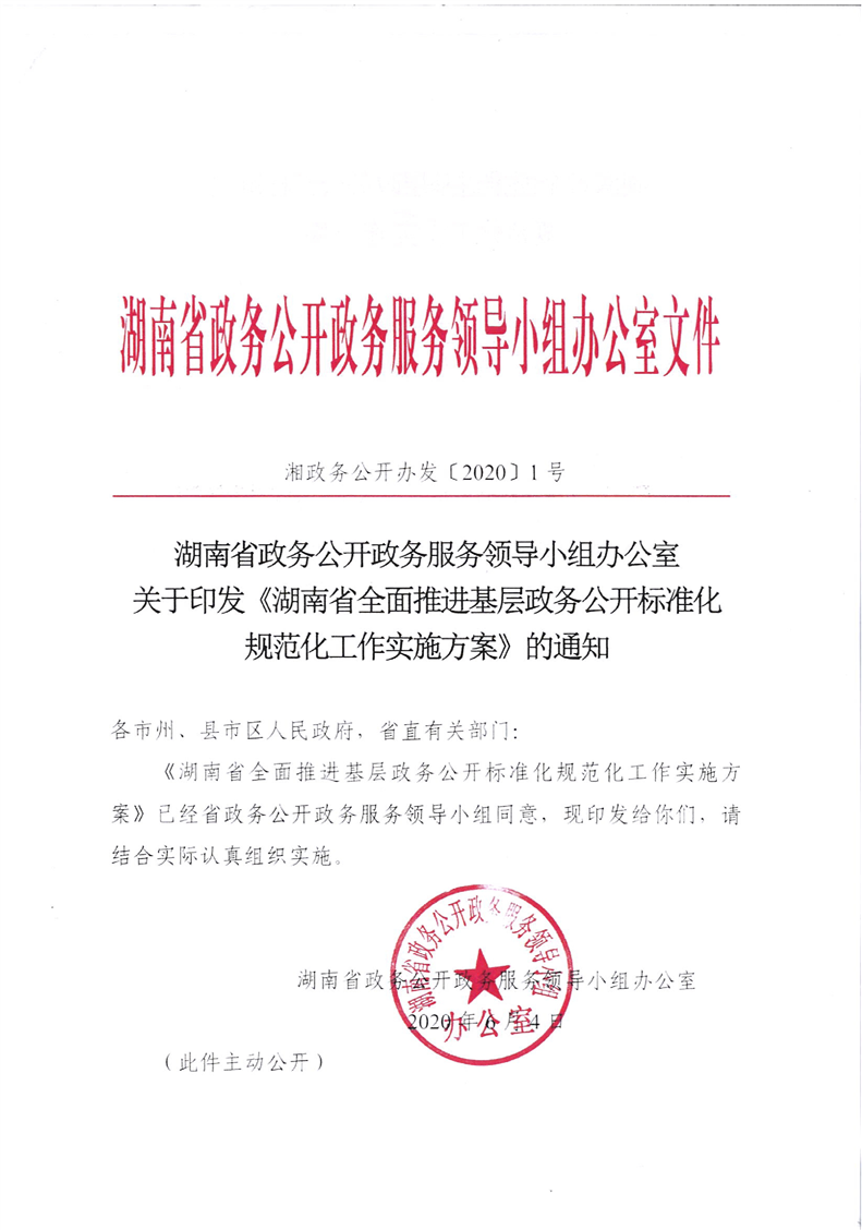 湖南省政務公開政務服務領(lǐng)導小組辦公室關(guān)于印發(fā)《湖南省全面推進基層政務公開標準化規(guī)范化工作實施方案》的通知(湘政務公開辦發(fā)〔2020〕1號)