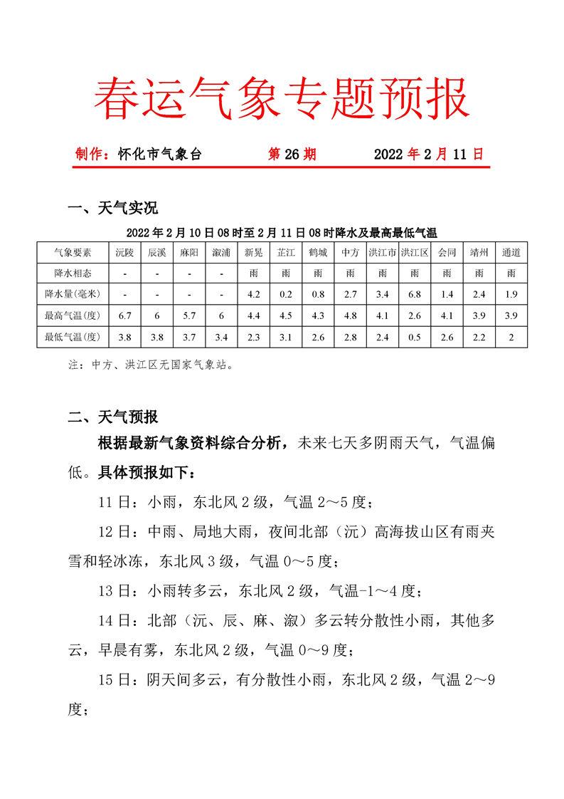 春運氣象專題預報 第26期