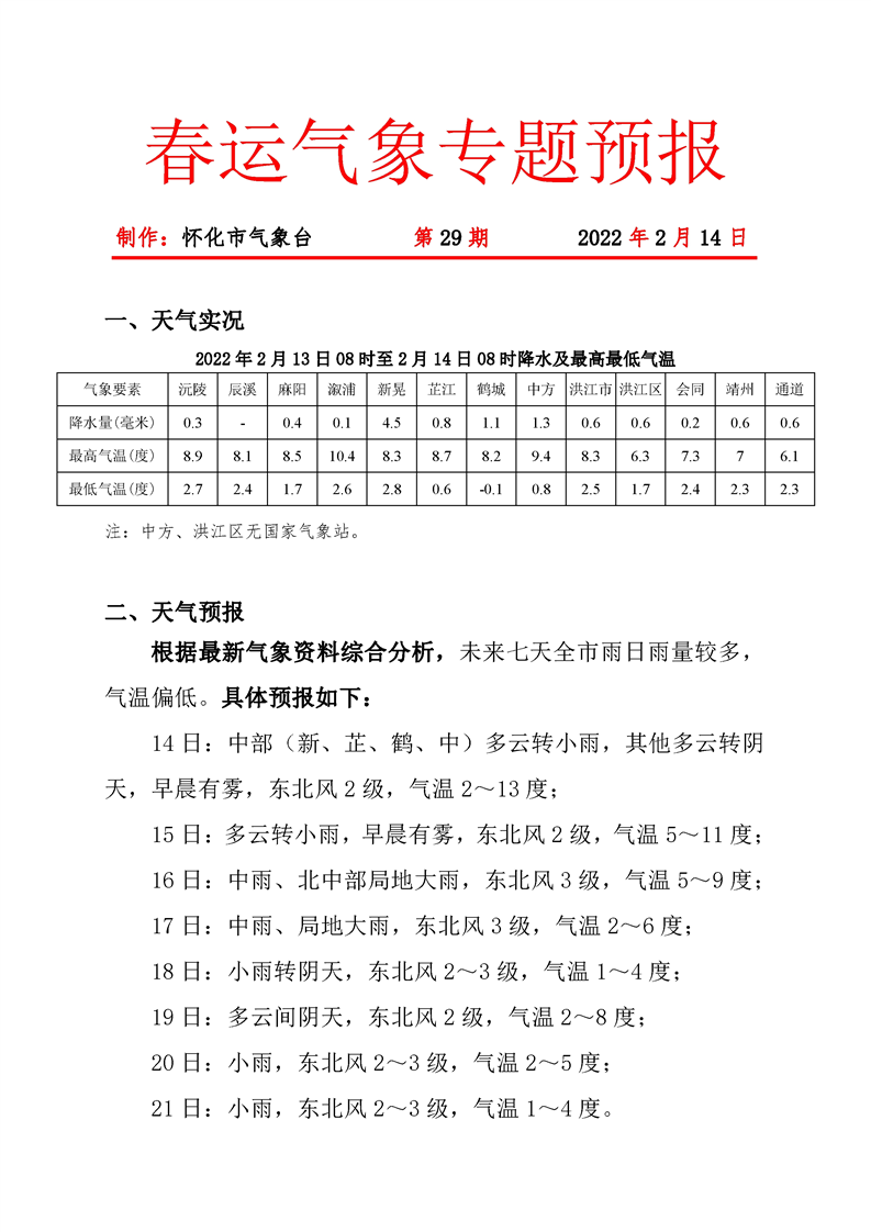 春運(yùn)氣象專題預(yù)報(bào) 第29期