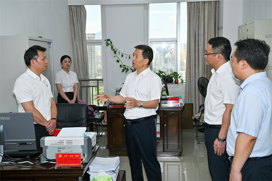 圖為許忠建在市科技局調研。(以上照片均由懷化日報全媒體記者 潘雨 攝)