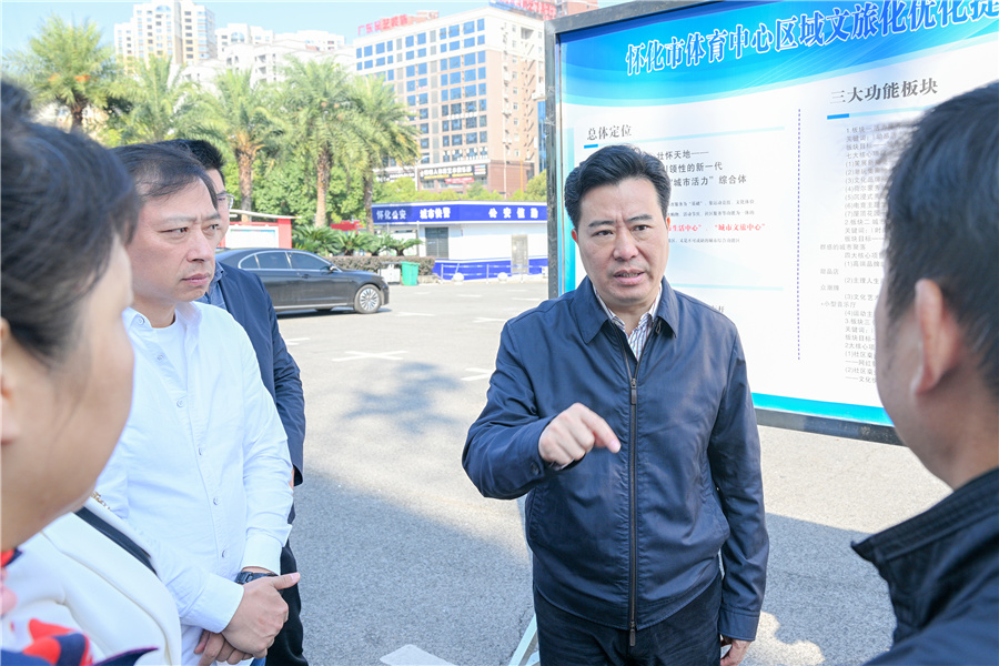 (10月22日上午,市委副書(shū)記、市長(zhǎng)黎春秋調(diào)研主城區(qū)城市承載商圈工作。懷化日?qǐng)?bào)全媒體記者 潘雨 攝)