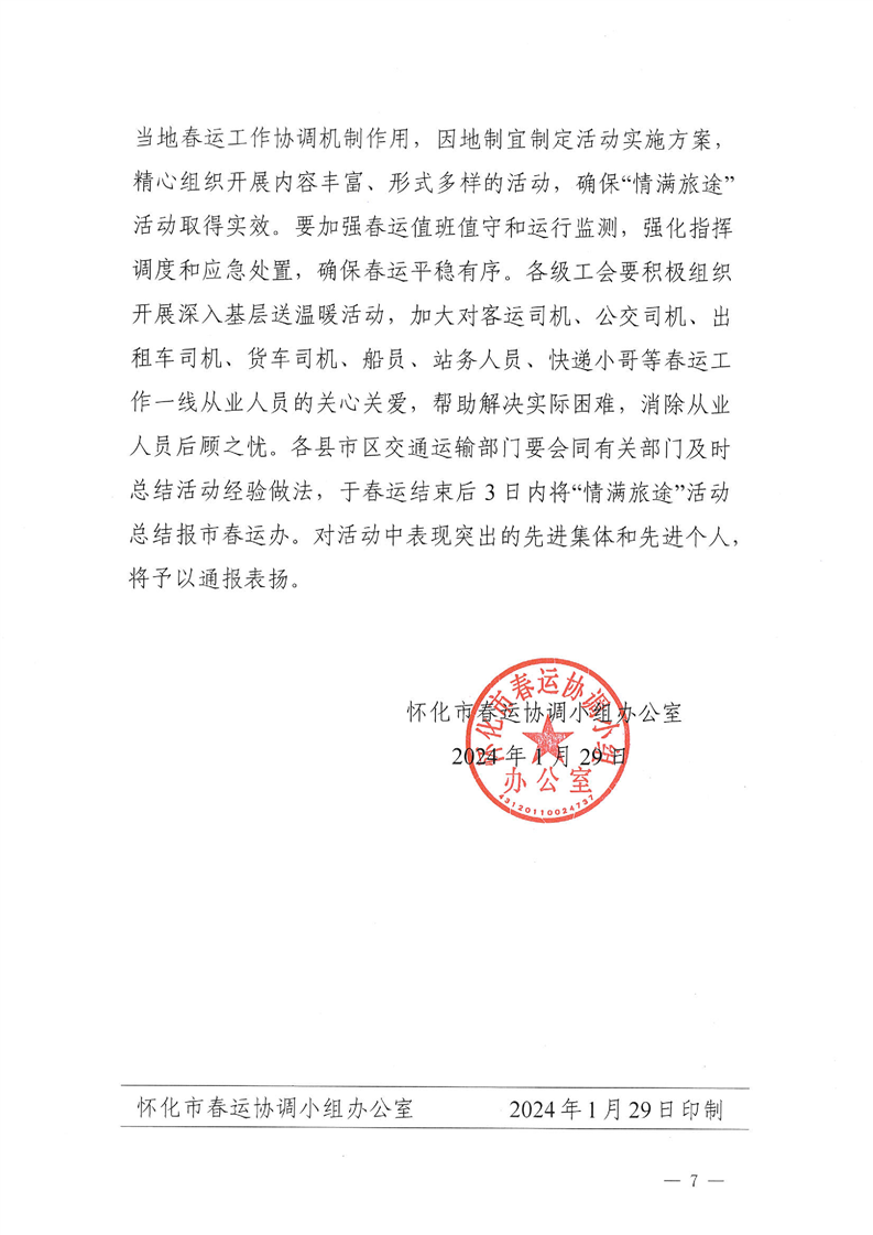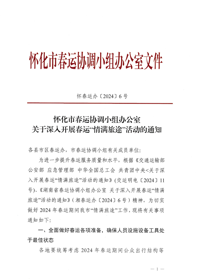 懷化市春運(yùn)協(xié)調(diào)小組辦公室關(guān)于深入開(kāi)展春運(yùn)“情滿旅途”活動(dòng)的通知